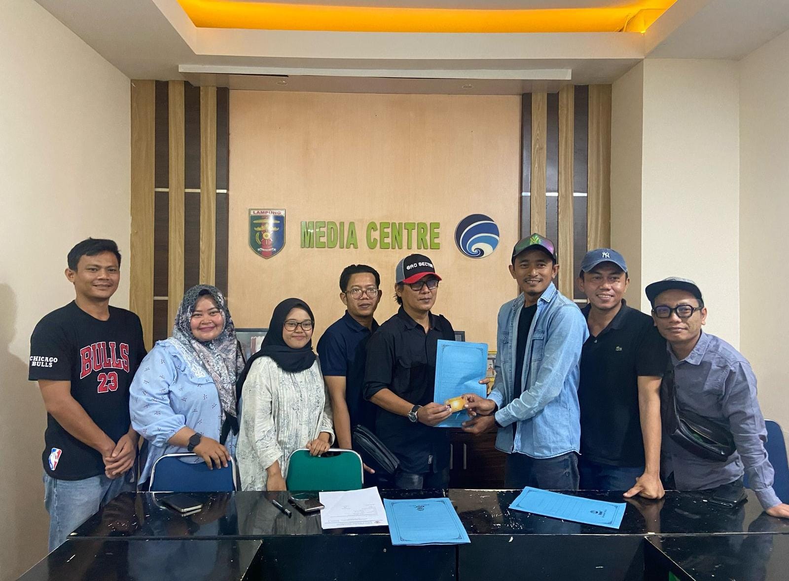 Didampingi sejumlah kolega, Abung tiba di sekretariat panitia tepat pukul 11.00 WIB dan menyerahkan dokumen administrasi, termasuk KTP dan Kartu Uji Kompetensi Wartawan (UKW).