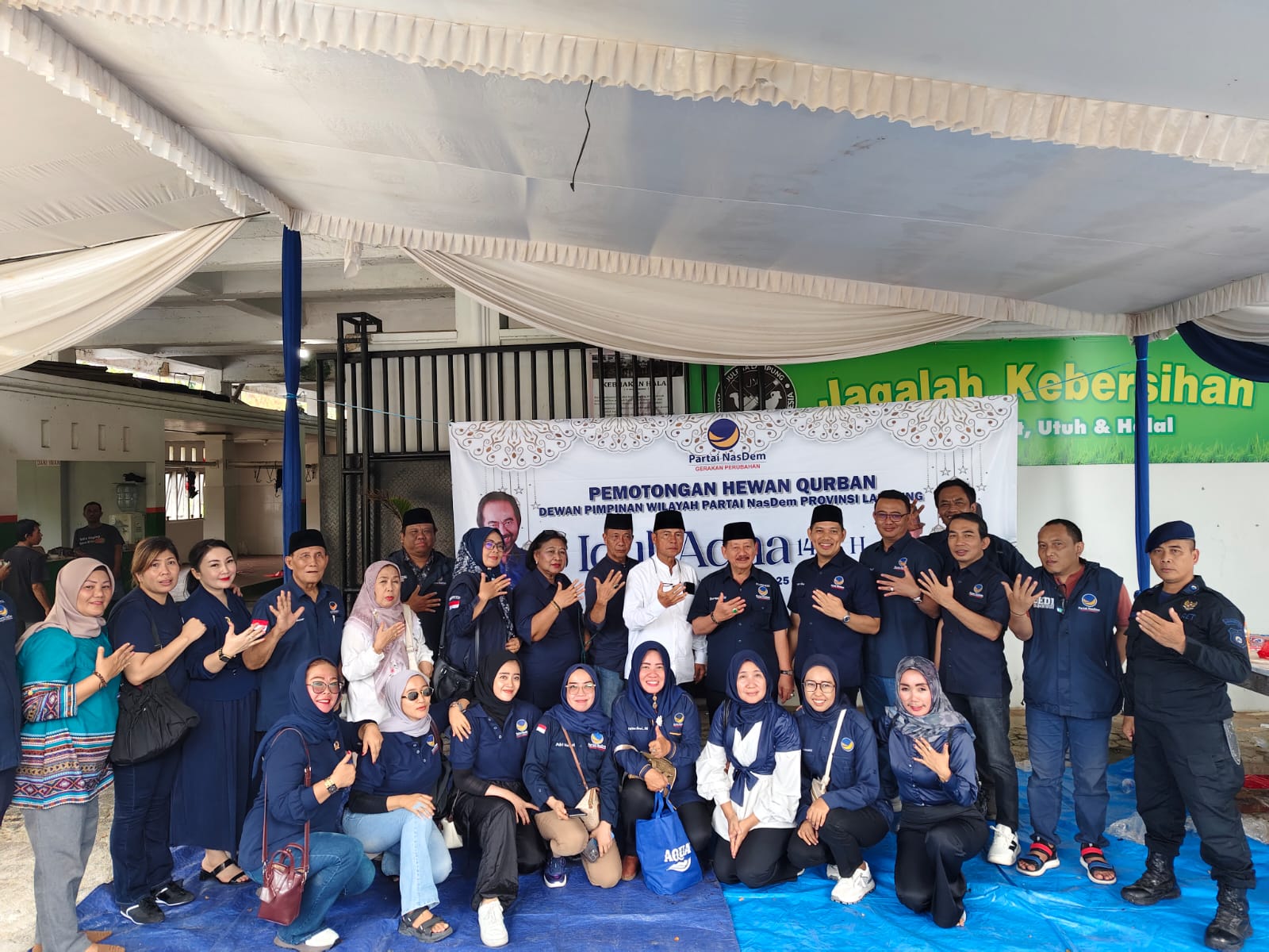 Onetime.id – Dewan Pimpinan Wilayah (DPW) Partai NasDem Lampung menyembelih enam ekor sapi kurban dalam perayaan Idul Adha 1446 Hijriah yang berlangsung pada Sabtu, (7/6/2025)