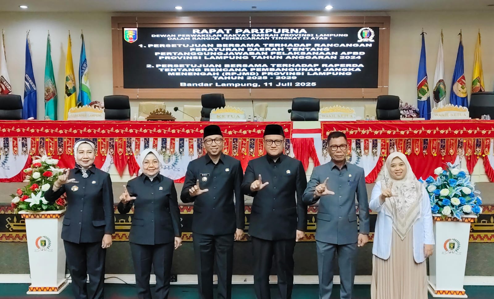 Onetime.id, Bandar Lampung – DPRD Provinsi Lampung secara resmi mengesahkan dokumen Rencana Pembangunan Jangka Menengah Daerah (RPJMD) 2025–2029 dalam rapat paripurna yang digelar Jumat, (11/7/ 2025).