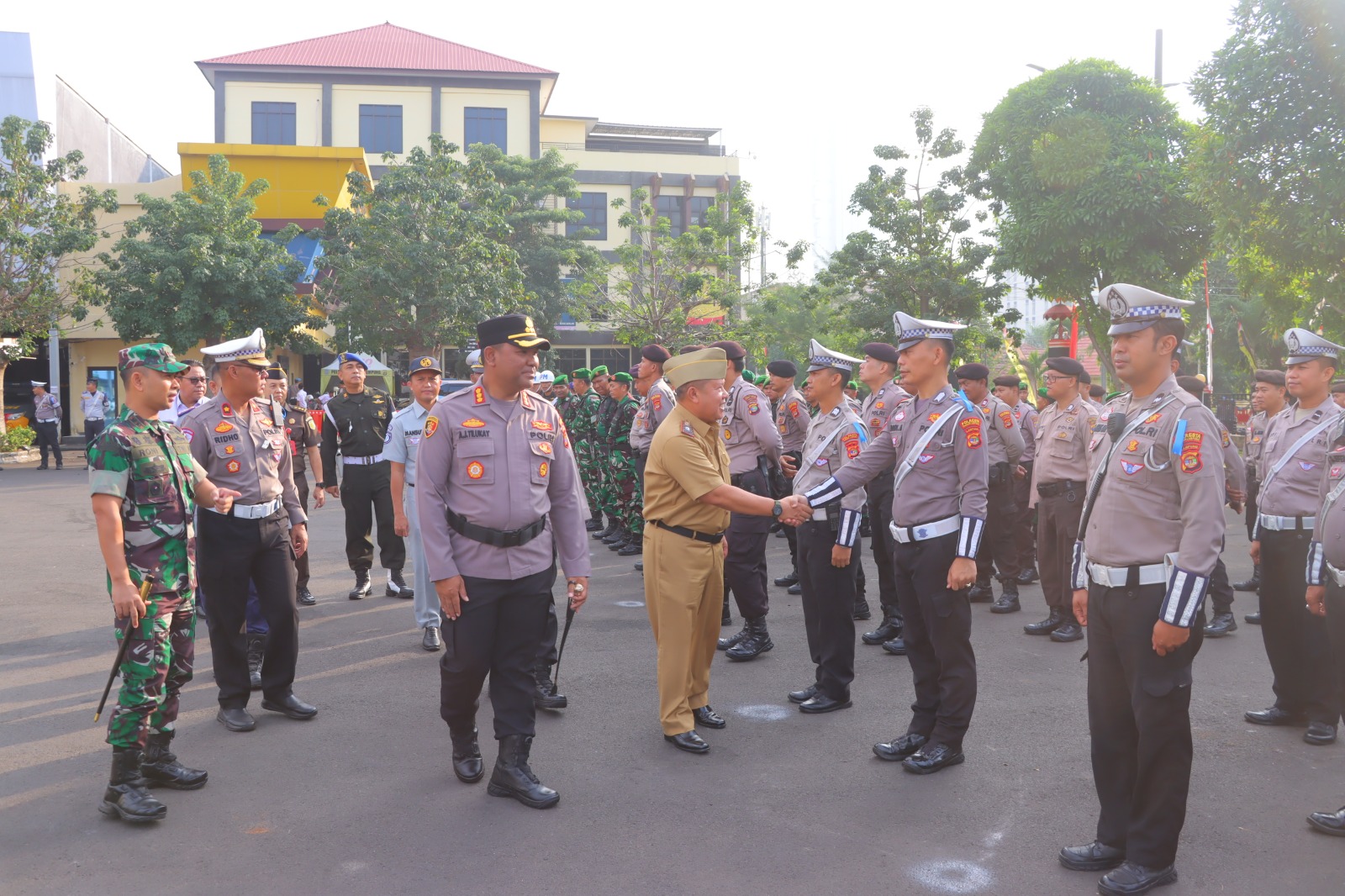 Kapolresta Bandar Lampung, Kombes Pol Alfret Jacob Tilukay, memimpin apel dan secara simbolis menyematkan pita operasi kepada perwakilan personel.