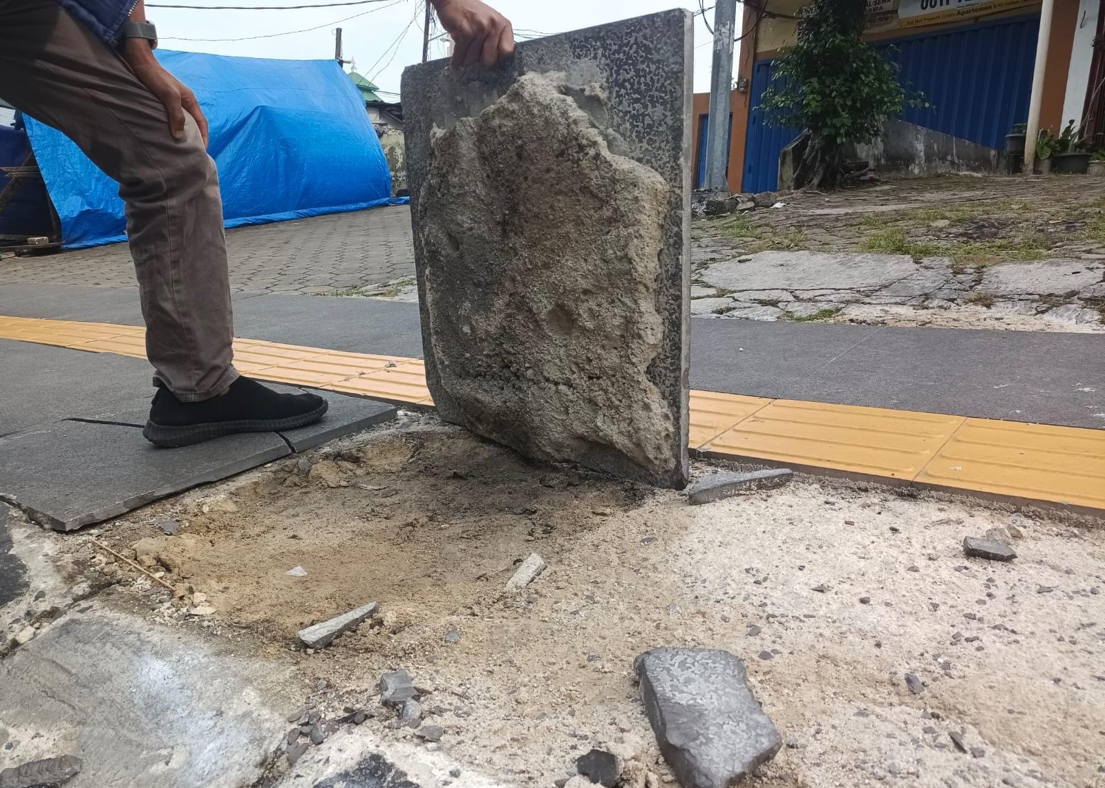 Trotoar di kawasan tersebut diketahui baru beberapa waktu lalu selesai diperbaiki.