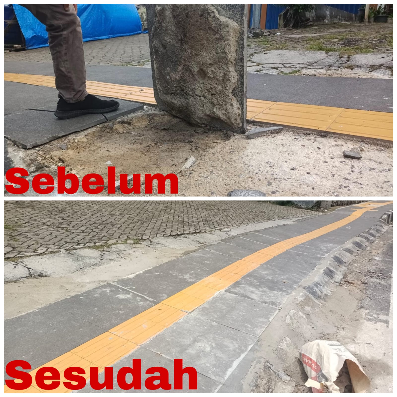 Trotoar di Jalan Dr Susilo yang sebelumnya dibiarkan rusak parah dan keramik pecah akhirnya baru diperbaiki setelah ramai diberitakan media.