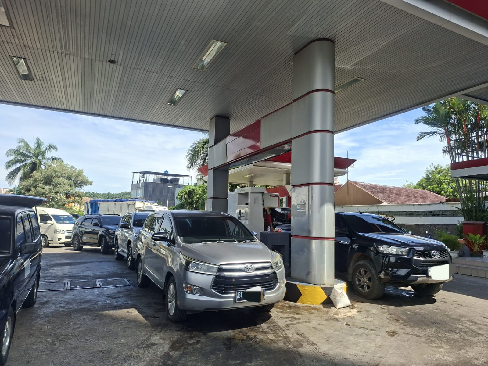 Disaat mobil lalu lalang melakukan pengecoran solar di SPBU Pahoman. Dok: Onetime.id.