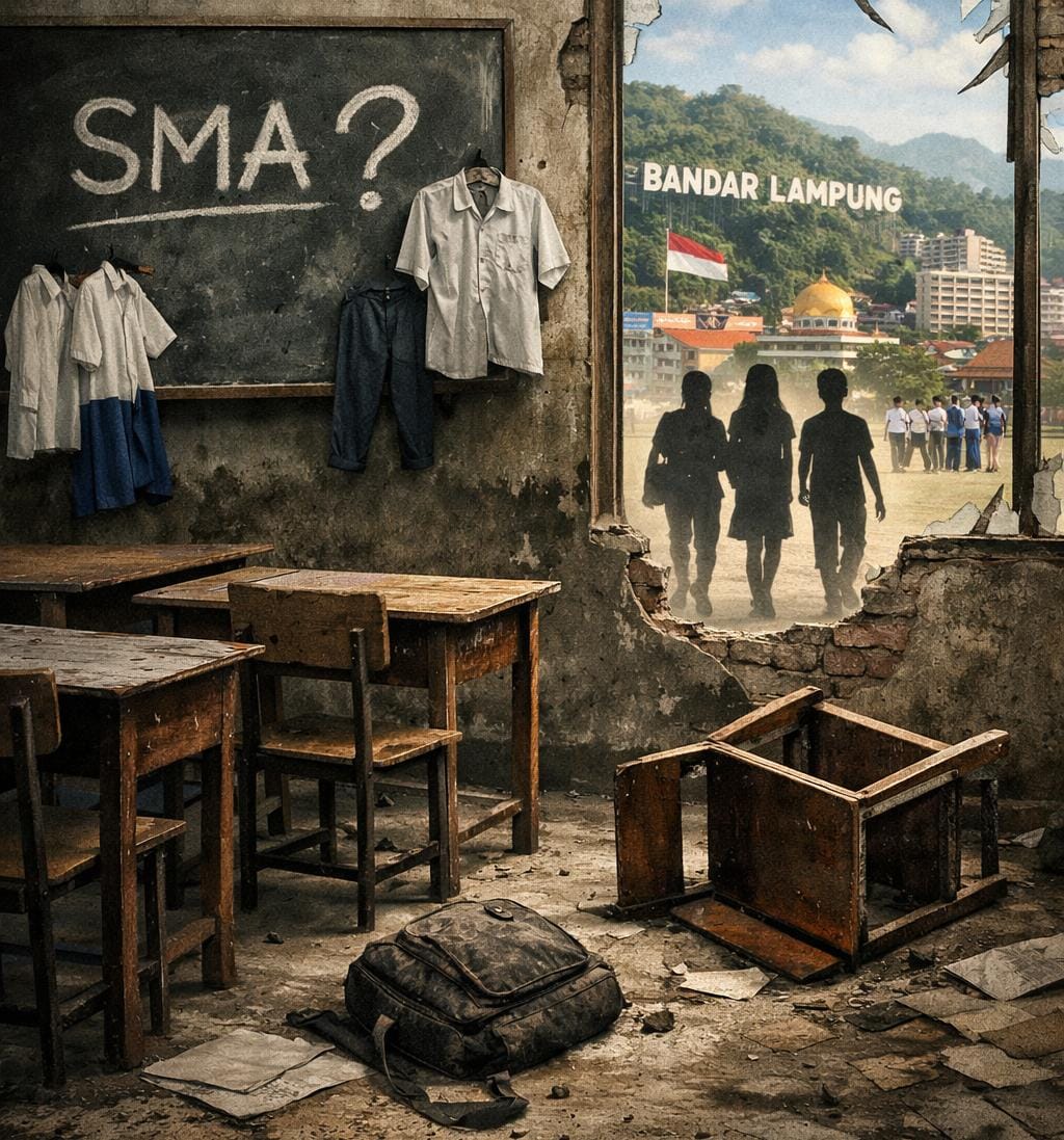 Laporan Data Strategis Pembangunan Daerah Kota Bandar Lampung 2022–2025 yang dirilis Badan Pusat Statistik (BPS) Kota Bandar Lampung mengungkap fenomena “kebocoran” partisipasi pendidikan yang kian melebar seiring kenaikan jenjang sekolah.
