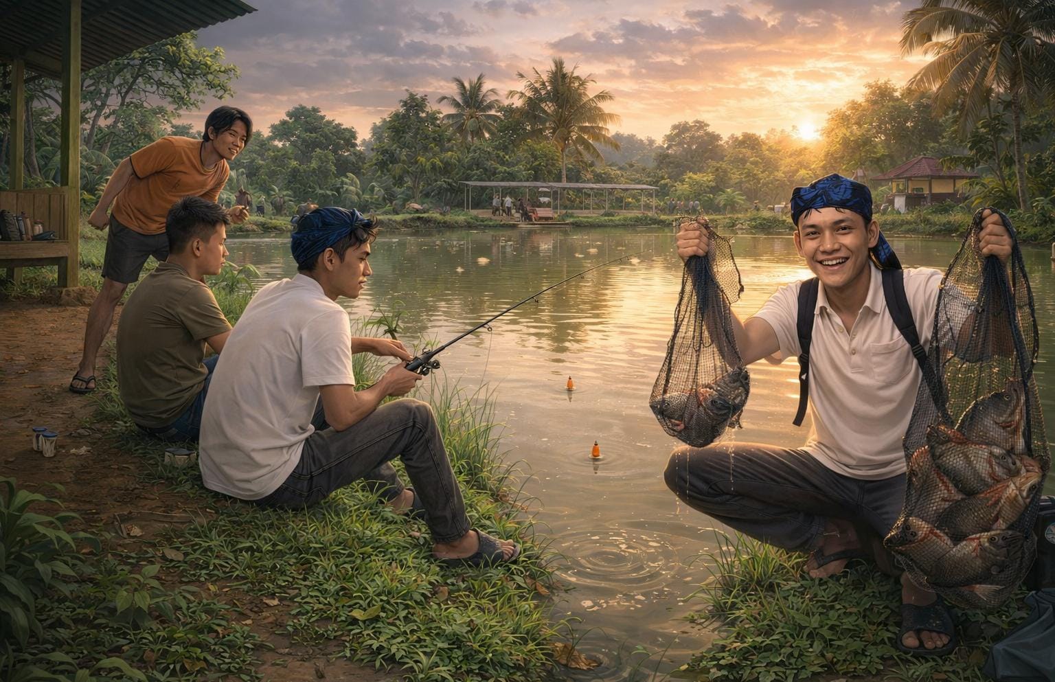 Para pemancing di tepi kolam tersenyum, bukan semata karena ikan yang didapat, tetapi karena momen yang dibagi.