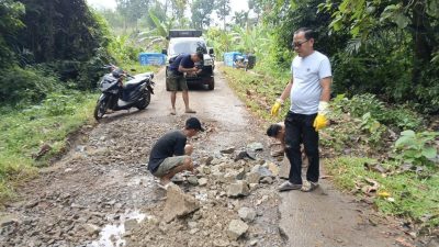 Deni Ribowo Turun Tangan Perbaiki Jalan Rusak di Way Kanan